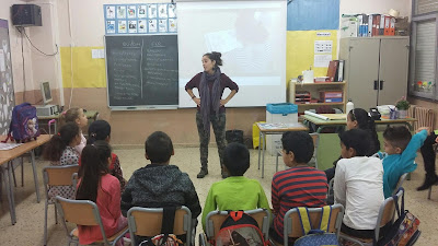 ''Hola, sóc la Mònica. Jo faig el reforç d'Infantil i estic substituint a l'Angelina perquè està malalta. Estic molt contenta d'estar en aquesta escola''.